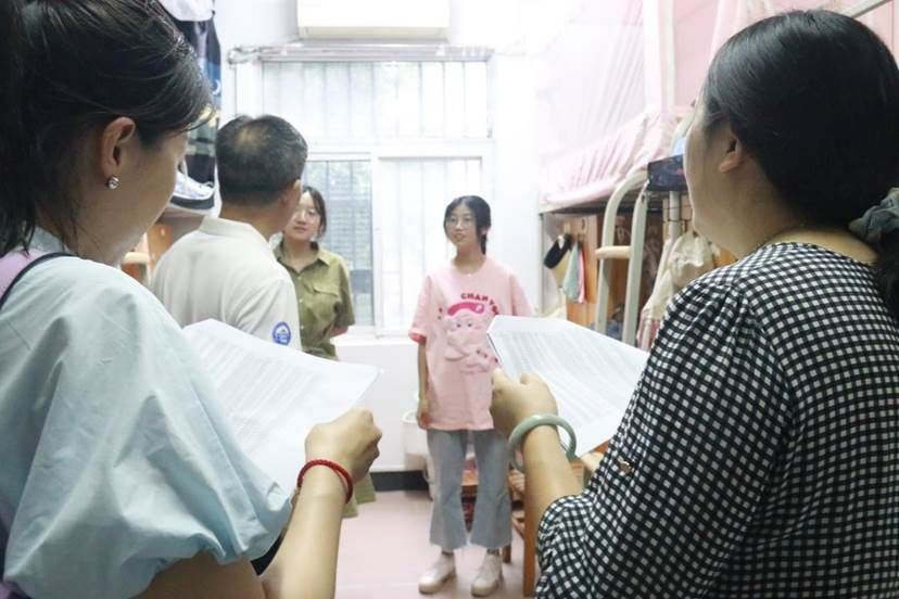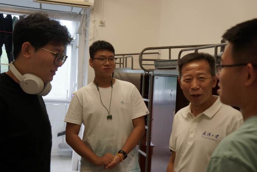 2023级新生中,男生居住在梅园四五舍,女生住在湖滨三舍。距离之远并未分毫减弱学院领导与老师们对同学们的关心与爱护。在走访过程中,学院领导和老师们对各位新同学的到来表示诚挚的祝贺和热烈的欢迎,同时仔细查看了新生住宿环境,并与新生们进行了亲切交流,耐心细致地回答同学们的问题,鼓励他们尽快融入班级、学院大家庭。卢昌宁书记和同学们聊起在学校、在宿舍的感受,一句句亲切的问候迅速拉近了与新生们的距离。李佃来院长勉励新生要积极调整心态,尽快适应大学的学习生活,希望同学们能够珍惜时光,扎实学习,放飞青春梦想,书写人生华章。