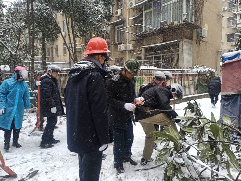 5号下午,在学院教职工群里,学院领导通报了此次雪灾情况。“学校现如今除冰清理树枝任务繁重,为了我们自己的家园尽早恢复常态,请党员志愿者参加志愿服务工作……”,一声集结号,学院多名老师默默的报名。