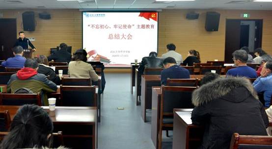 吴根友院长对会议进行总结,并希望学院全体党员师生要进一步强化理论武装,持续深入学习贯彻习近平新时代中国特色社会主义思想,把握精神实质、深入贯彻落实;要进一步深化学习习近平总书记在第二批“不忘初心、牢记使命”主题教育总结大会上的讲话精神,坚持把“不忘初心、牢记使命”作为永恒课题、终身课题;要进一步抓好问题整改落实,着力巩固和拓展主题教育成果,以实际行动推动教学科研、人才培养等各项事业发展。