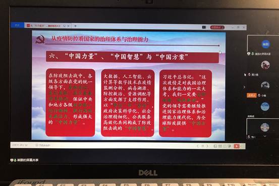 听完这一次线上党课,同学们纷纷表示受益匪浅。本科生党支部书记、2016级现代哲学国际班的胡楷昀说:在本次党课学习中,两位学长理论结合实际、深入浅出地对当前国内外形式和党的十九届四中全会相关理论进行了分析讲解,使得我更好的认识到了疫情爆发至今的国内外的各方面情况;更加清楚明白地体会到了党的十九届四中全会所归纳提出的中国特色社会主义制度和国家治理体系所彰显出的显著优势;更加能够切身地体会到中国共产党为什么能、马克思主义为什么行和中国特色社会主义制度为什么好。