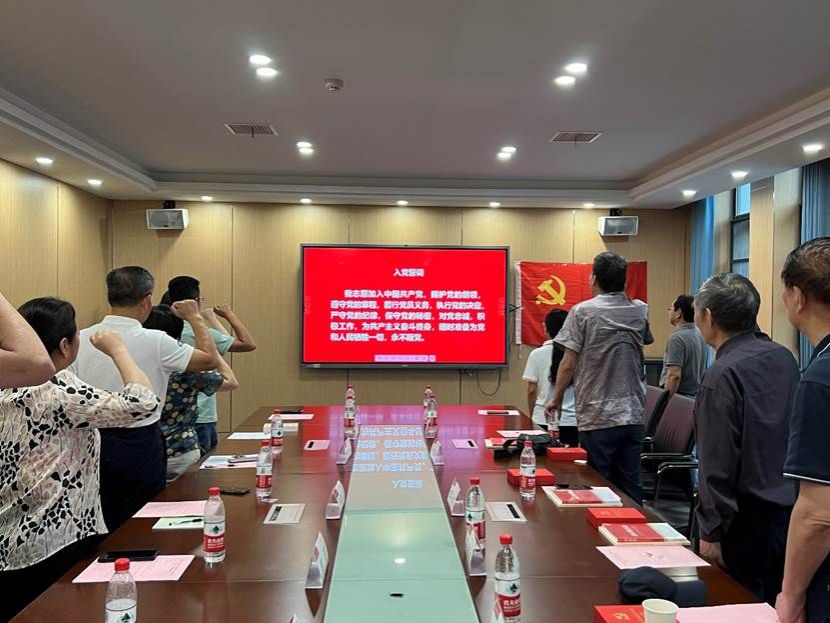 最后,全体党员面向鲜红的中国共产党党旗,由程焱发同志领誓,在场的全体党员再次庄严宣誓,用铮铮誓词宣示了对党和人民的忠诚,赓续中国共产党人的精神血脉。