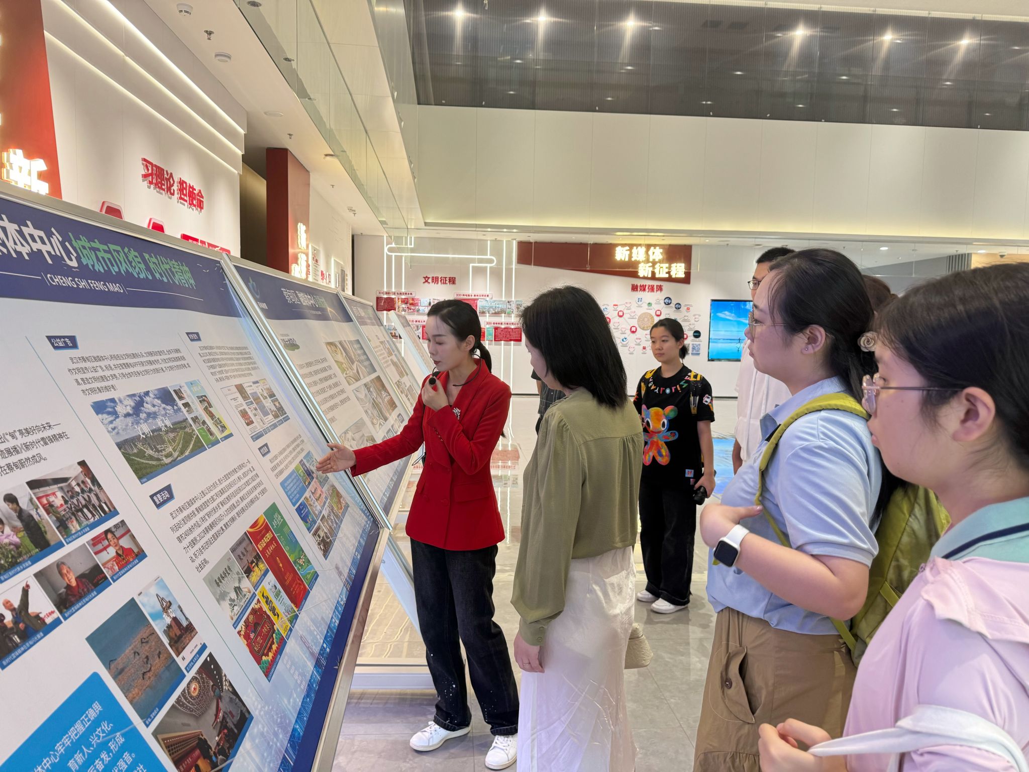 下午,学院师生前往武汉市蔡甸区融媒体中心走访调研。区融媒体中心新闻一支部书记邬艳霞对大家的到来表示欢迎,并陪同参观了全媒体展厅、演播室、电商孵化基地和直播间,详细介绍了融媒体中心主要业务范畴、运营运作以及媒体行业在支援蔡甸地方特产推广方面发挥的重要作用。