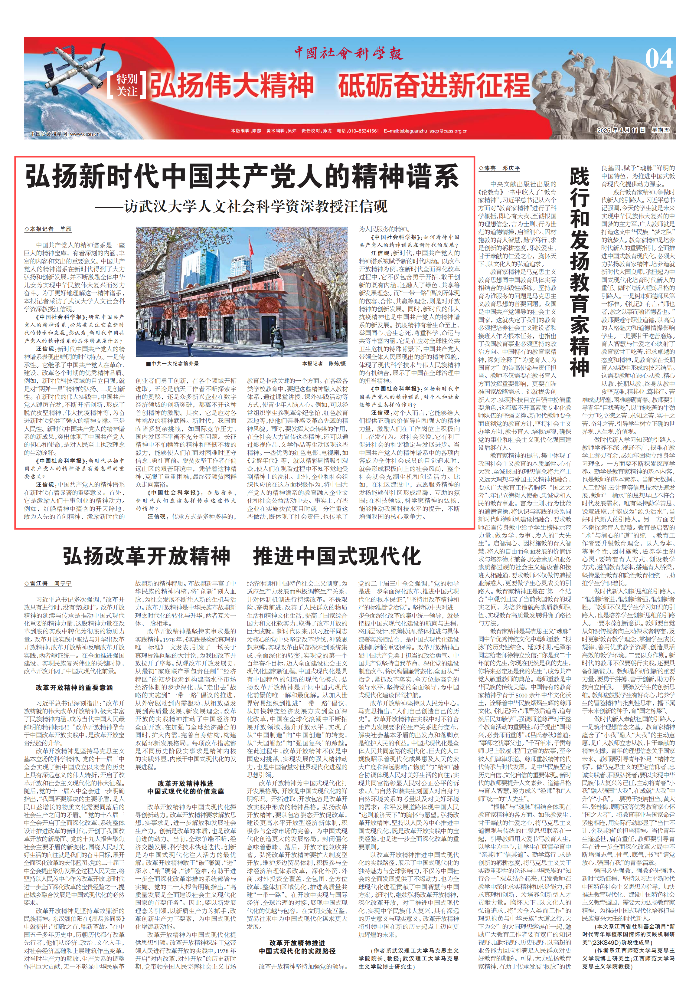 【中国社会科学报】弘扬新时代中国共产党人的精神谱系——访百合小说 人文社会科学资深教授汪信砚