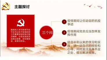听了四位同志的讲述,大家都深受感动,“感时局艰危,思立志报国”。在钱亚琼同学的组织下,大家积极讨论,各自分享了在疫情期间看到的感人事迹,从中的体会和感悟,并回想和反思了半年来的学习生活情况。