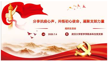 通过开展“分享抗疫心声,共悟初心使命,凝聚支部力量”组织生活会,发扬并学习优秀的支部同志们的抗疫事迹,更加坚定了同学们抗疫必胜的信心,也激励了学生党员以实际行动来践行自身肩负的责任和使命,相信在党中央的坚强领导下,全体党员、全国人民团结一心、众志成城,一定能够打赢这场疫情防控阻击战!
