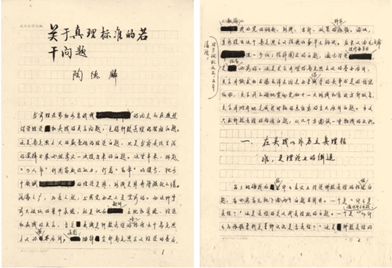 △1978年7月23日在中国社会科学院主办的全国真理标准讨论会上的大会发言稿前两页手稿