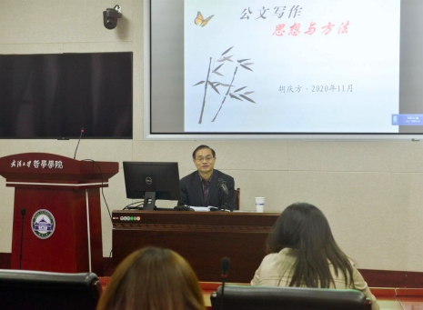 胡庆方老师以《公文写作——思想与方法》为题,从公文的主要特点、表达方法、思维规律和组织策划四个方面具体阐述公文写作的思路和要求。针对公文写作的特点详细阐述写作过程可能遇到的问题和相应的处理方式。在谈及如何提升公文的表达方法上,胡老师结合实例提出引经据典、讲好故事、点面结合、纵横比较和虚实结合五种具体的方法。在思维规律方面,胡老师跟大家分享了自己总结的四步思维法。最后,他简要介绍了公文写作中组织策划的相关要点。