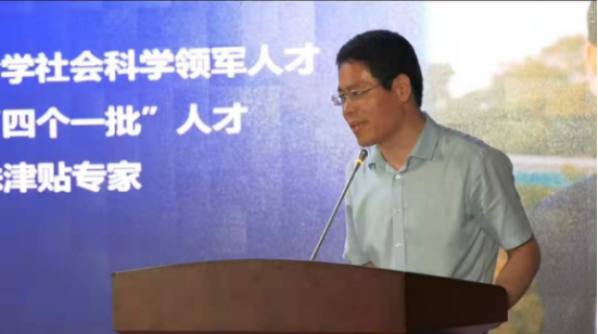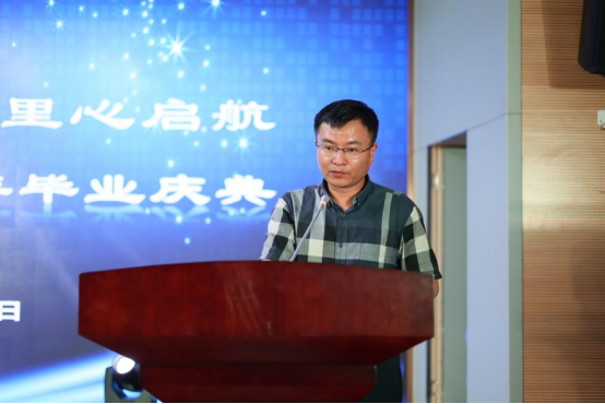 钟年教授代表百合小说 教师上台发言。钟年教授通过讲述蓝翔的故事、武汉疫情期间自己教学的故事和王兵校友的抗疫事迹,探讨了文化在人的身心协调中、在社会精神文明建设中不可或缺的作用。最后,钟老师用十六个字勉励各位毕业生:“志存高远、遇事躬行、专业安身、文化立命。”