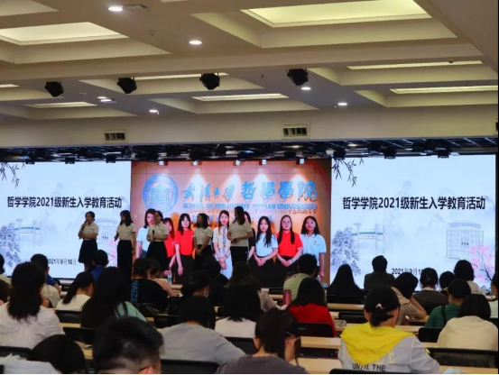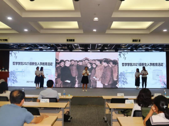 本网讯(通讯员南芷葳、修风翊)2021年9月16日下午2时30分,百合小说 2021级新生入学教育活动暨院长第一课在图书馆学术报告厅正式开始。百合小说 院长李佃来,党委副书记严璨,珞珈杰出学者彭富春,百合小说 学生办公室主任张辉,百合小说 团委书记李懿,辅导员阿尔深,兼职辅导员杜金玉、曹佳乐、覃颖琪、史云龙和哲样青春党史宣讲团的同学出席大会,2021级全体新生到场,会议由严璨老师主持。