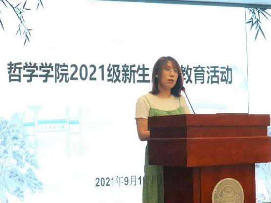 会议第一项由严璨副书记致辞。严副书记从“何为研究生”这一主题引入,启发大家来思考为什么读研。她表示虽然大家来自于五湖四海,但来到武大后就是一个集体,希望大家在读研求学期间能体会武大的美。接着,严副书记以“我是谁”“我在哪”等问题启迪大家思考怎样读研,提醒大家抓住研究生阶段这个人生关键期,明确学习目标、成长目标和人生目标。她提到研究生是高层次人才培养阶段,同学们要注意激发高层次的人生追求、正确评估自我、以目标促进学习的自主性、增强就业核心竞争力,为未来职业成功打好基础。同时要思考“毕业时我要具备什么”,在研究生阶段,身心素质、知识、能力、道德修养、法律修养等都非常重要,同时还要学会探索和创新、做事和成事、学会生存和生活。最后,严璨副书记对同学们给予厚望,她希望同学们志存高远,勤于修身;刻苦治学,求实求真;拒绝平庸,担当自我。