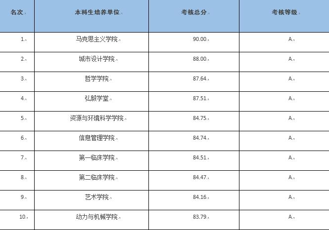 本网讯(通讯员张辉)根据《关于开展2021年度就业工作考核评估的通知》,经各培养单位自评和学校复查审核、测算,学校公布了综合考评获得A等的10个先进本科生、研究生培养单位名单。