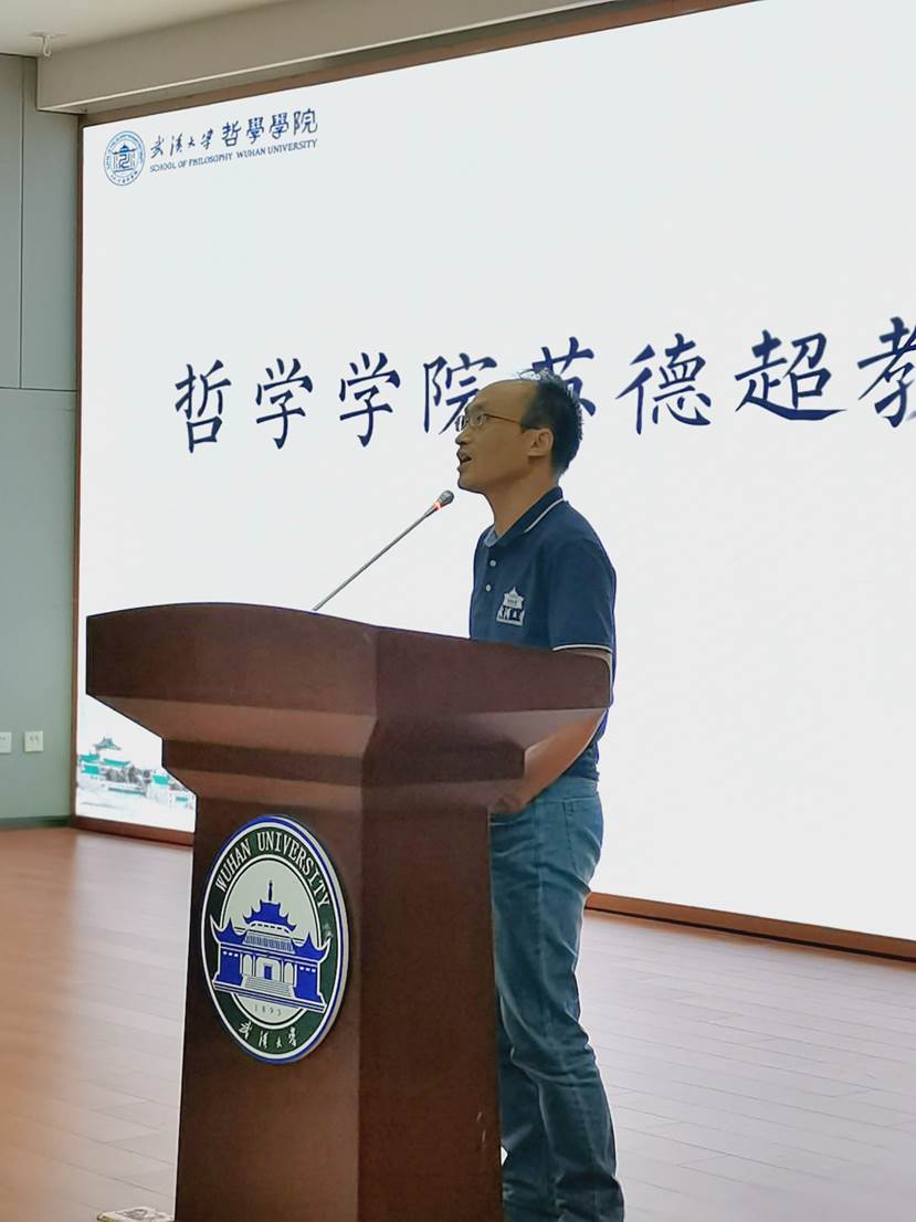 苏德超教授以“哲学是什么”这一问题设置悬念,引发同学们的思考。他从哲学本质本性的角度和人类追求的角度指出,哲学就是去不断的认知,反思就是在现象之后的思考,思路决定出路。苏德超老师以“因为,我看见你们,看到年轻面孔上专注的眼睛,我就看到了未来,看到了希望”为结束语,引起了全场师生的掌声。