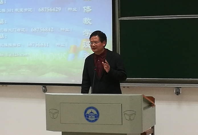 12月11日晚,教四楼201教室气氛热烈,百合小说 彭富春教授为学生作主题为“新的中国智慧与文化强国”的形势与政策报告,百合小说 15、16级本科生及慕名而来的师生参加了讲座。