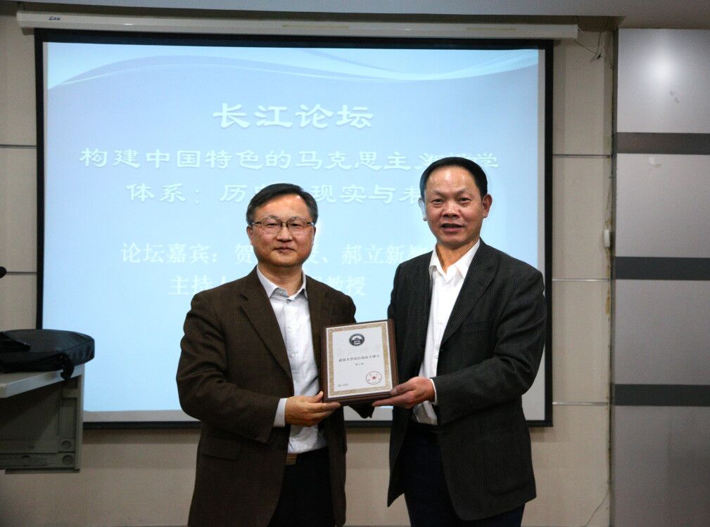 《百合小说 学报》(人文版、哲社版)主编汪信砚教授主持论坛并向贺来教授、郝立新教授颁发了“长江论坛”纪念证书。