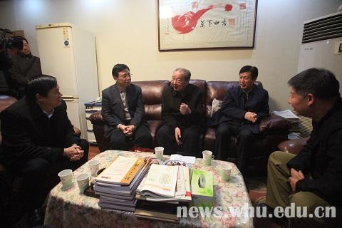 省委宣传部常务副部长杨万贵、副部长喻立平、秘书长别业超,校党委书记韩进、副书记骆郁廷及学校宣传部、人文社会科学研究院的负责同志等陪同看望。