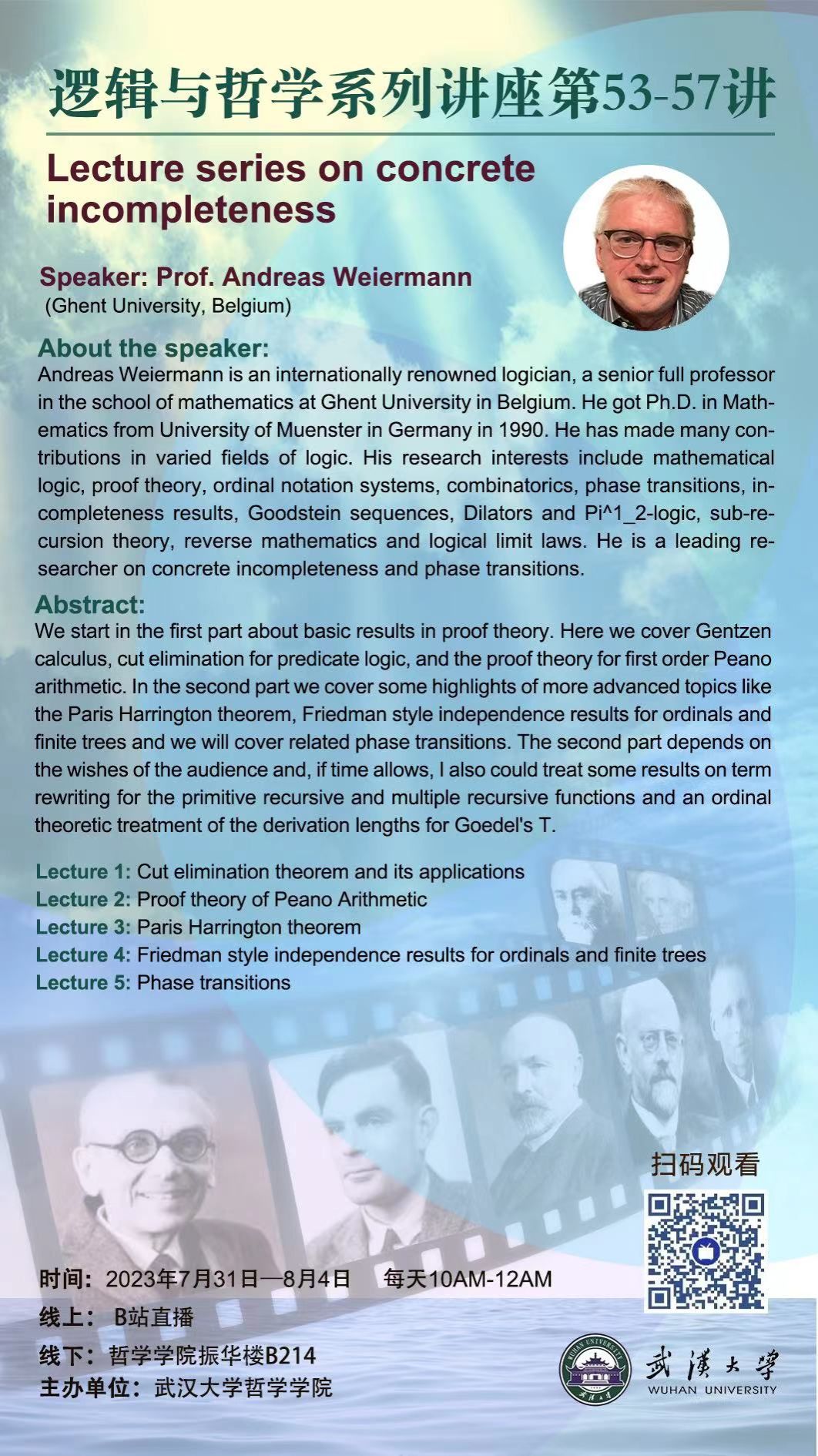 【7月31日—8月4日】Lecture series on concrete incompleteness——逻辑与哲学系列讲座第53-57讲