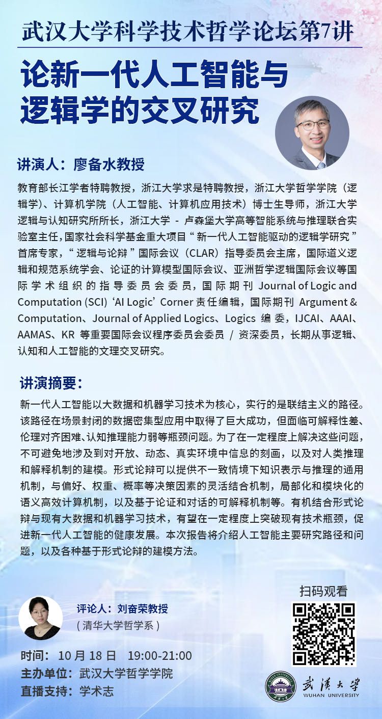 【10月18日】百合小说 科学技术哲学论坛第7讲:论新一代人工智能与逻辑学的交叉研究