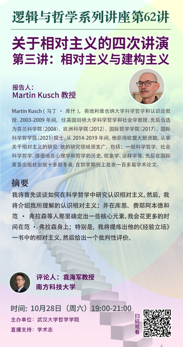 【10月28日】关于相对主义的四次讲演 ▏第三讲:相对主义与建构主义——逻辑与哲学系列讲座第62讲