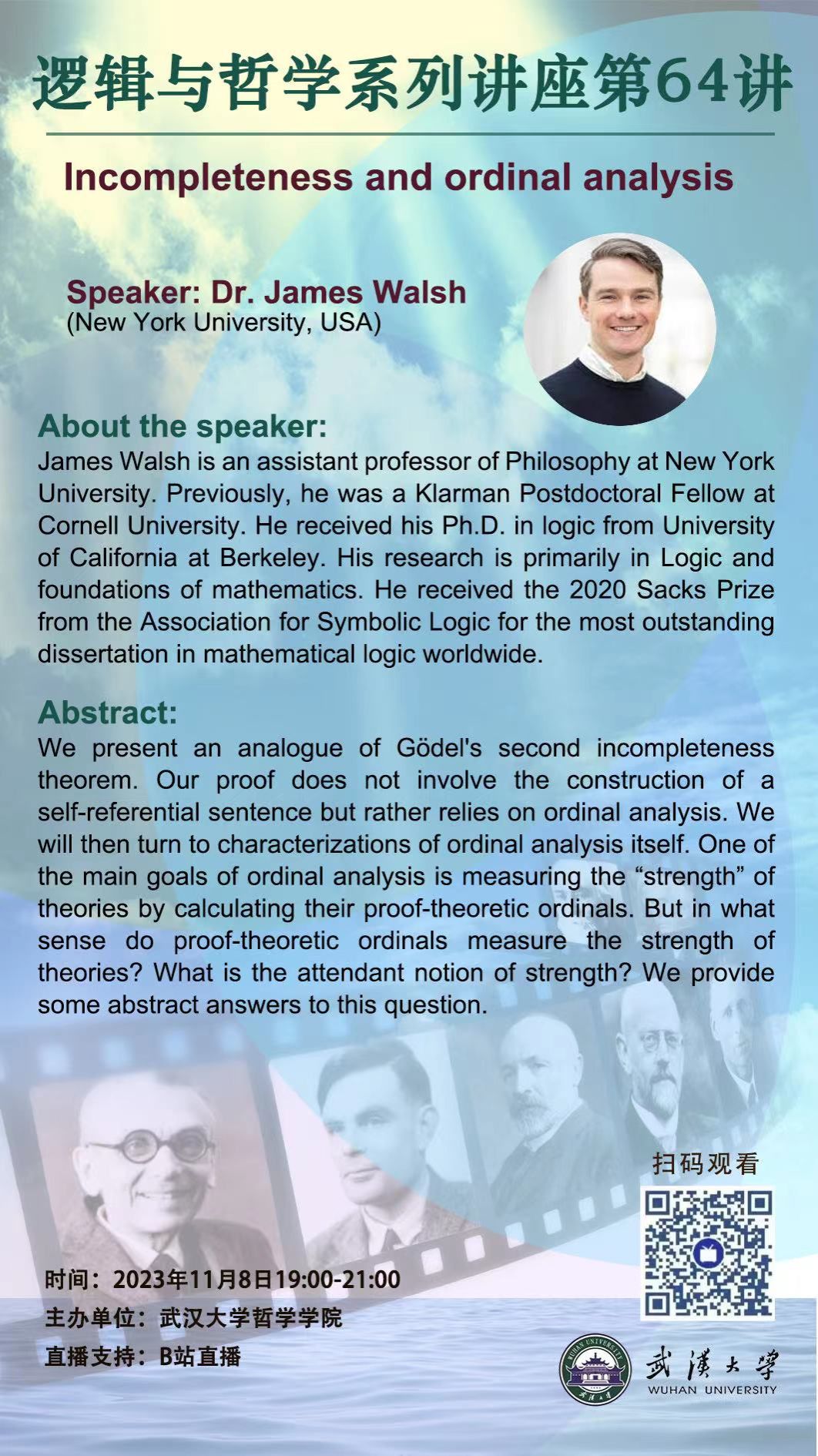 【11月8日】Incompleteness and ordinal analysis ——逻辑与哲学系列讲座第64讲