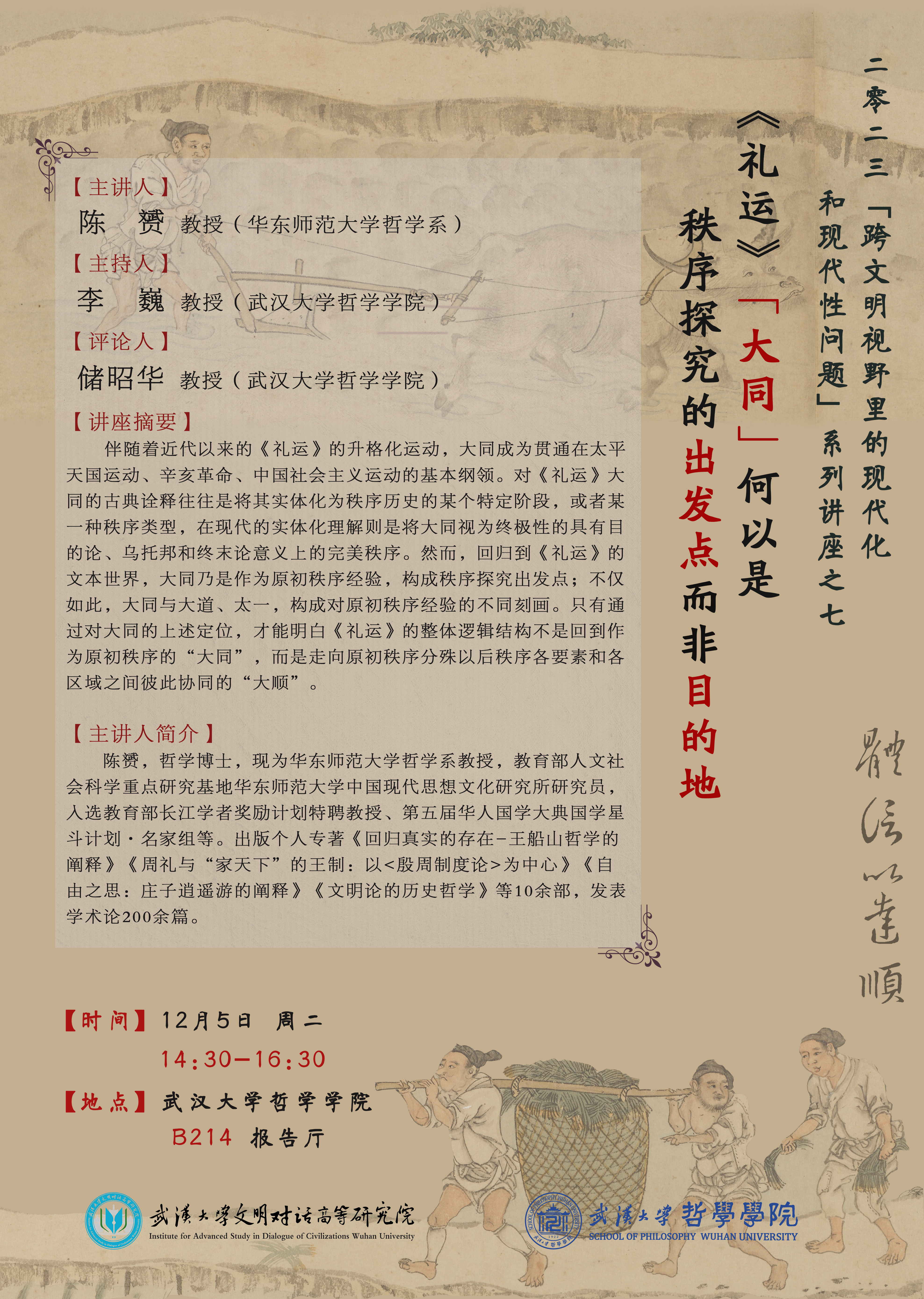 【12月5日】《礼运》「大同」何以是秩序探究的出发点而非目的地——二零二三「跨文明视野里的现代化和现代性问题」系列讲座之七