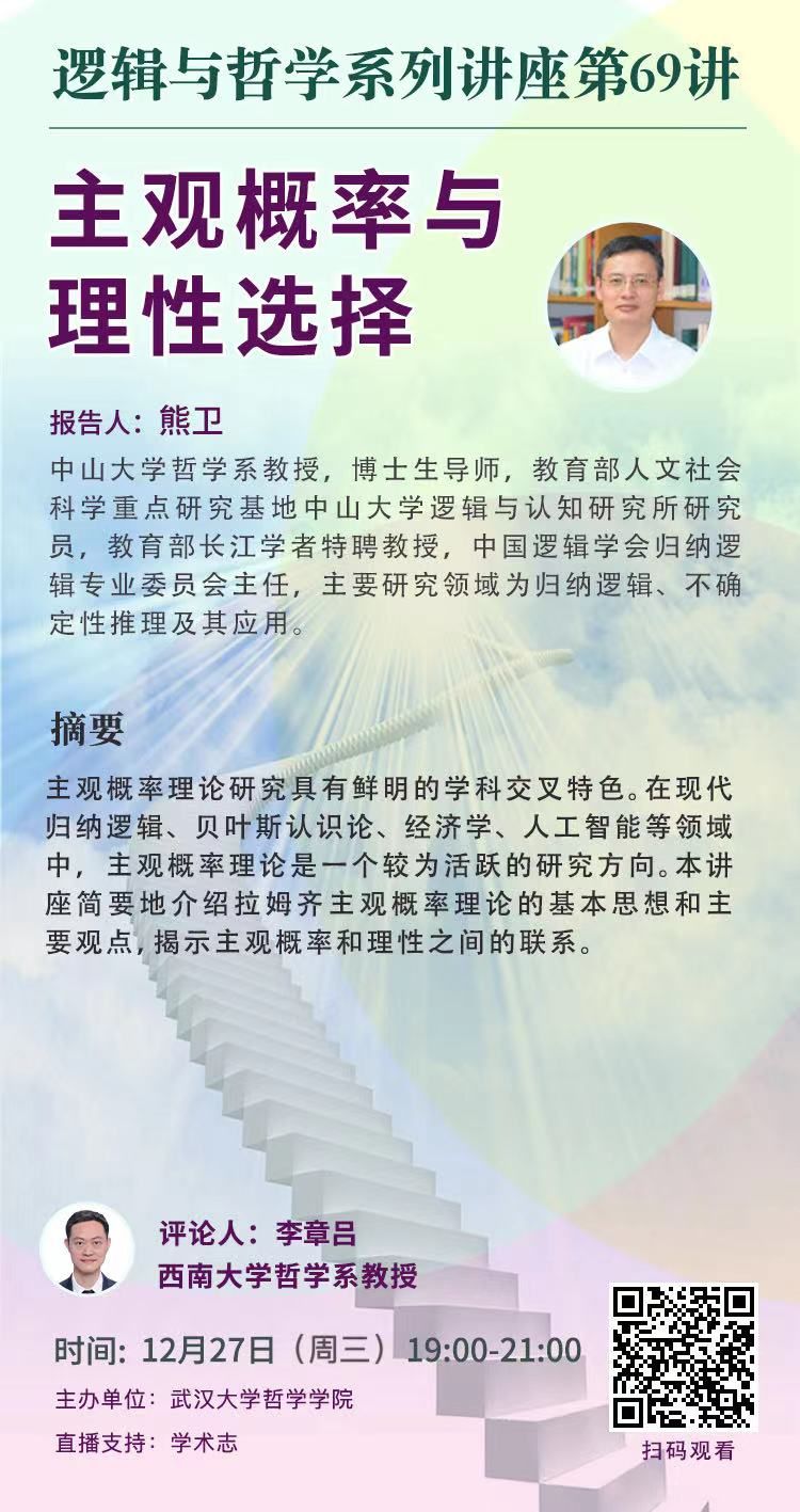【12月27日】主观概率与理性选择——逻辑与哲学系列讲座第69讲