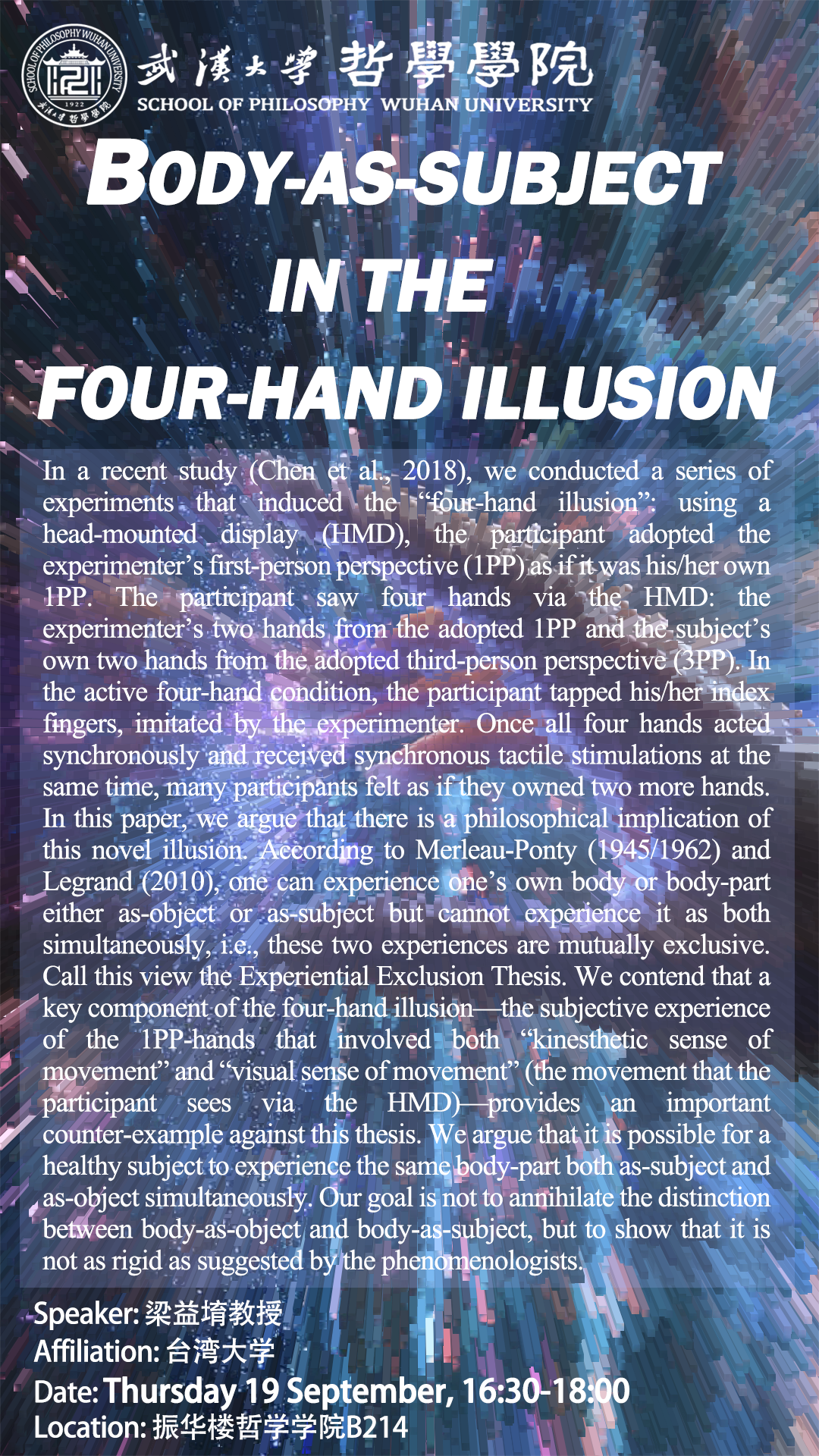 【9月19日】Body-as-Subject in the Four-Hand Illusion