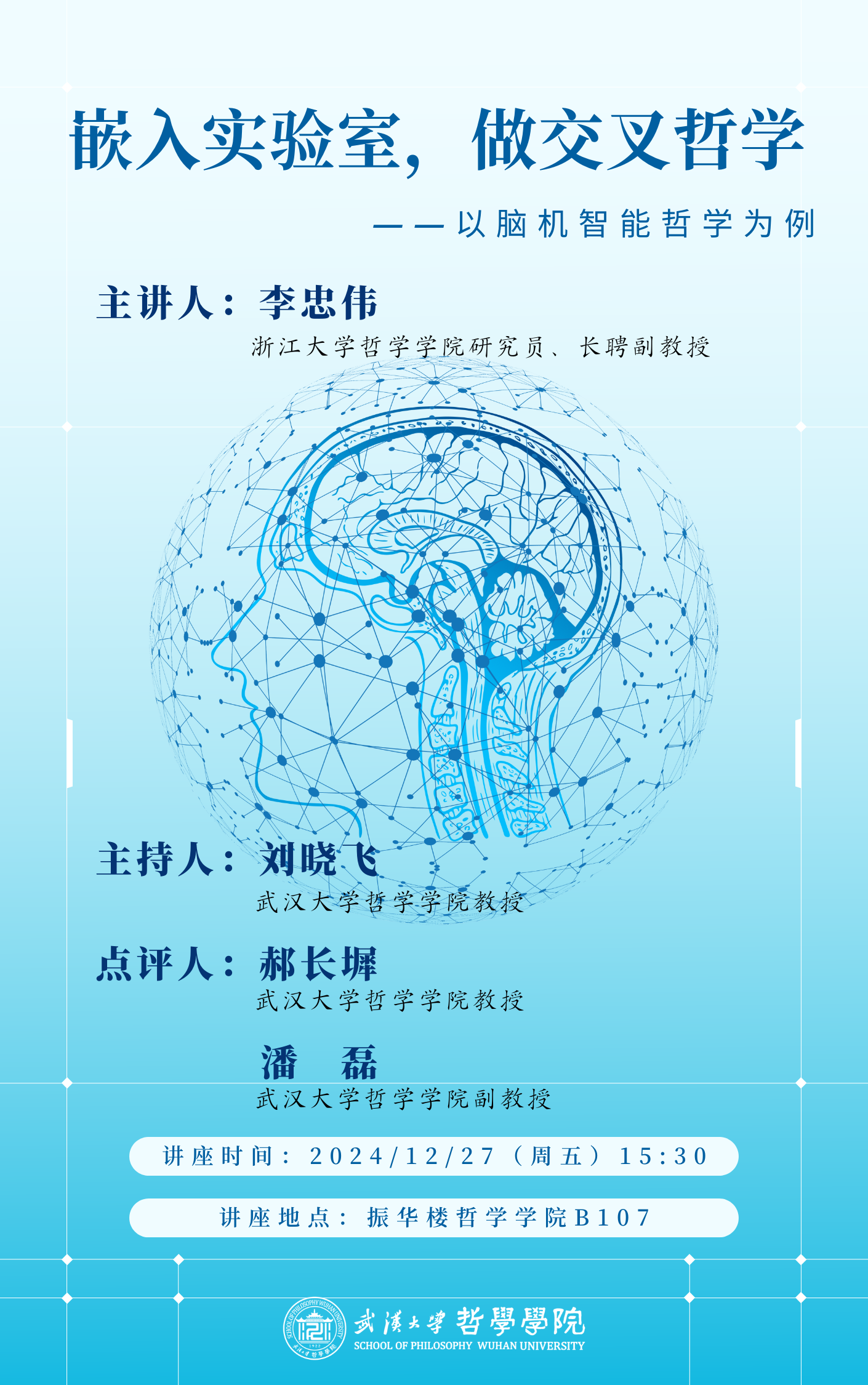 【12月27日】讲座预告 | 李忠伟:嵌入实验室,做交叉哲学——以脑机智能哲学为例