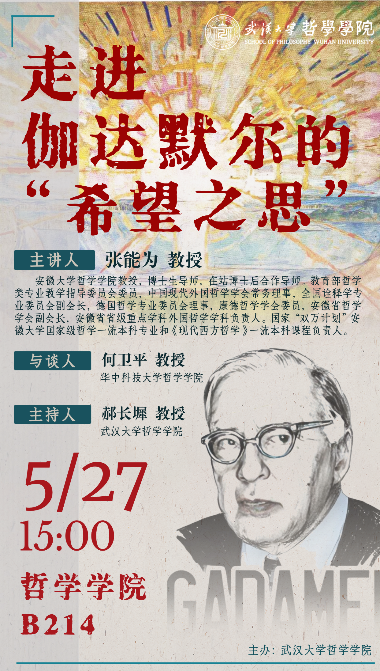 【5月27日】讲座预告 | 张能为:走进伽达默尔的“希望之思”
