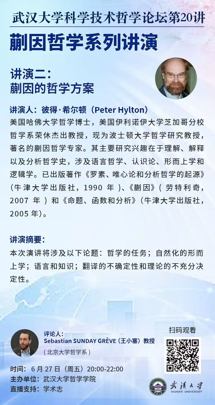 【6月27日】武汉大学科学技术哲学论坛第20讲 ▏蒯因哲学系列讲演二:蒯因的哲学方案