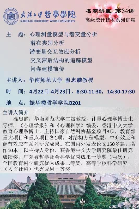 【4月22—23日】名家讲座第34讲:高级统计技术系列讲座