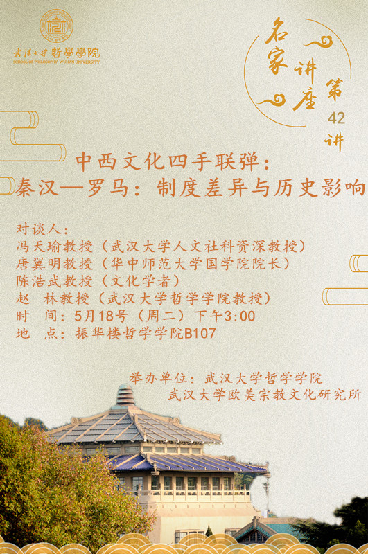 【5月18日】名家讲座第42讲:中西文化四手联弹:秦汉——罗马:制度差异与历史影响