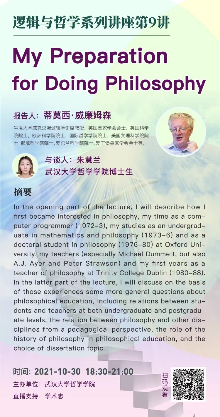 【10月30日】My Preparation for Doing Philosophy——逻辑与哲学系列讲座第9讲