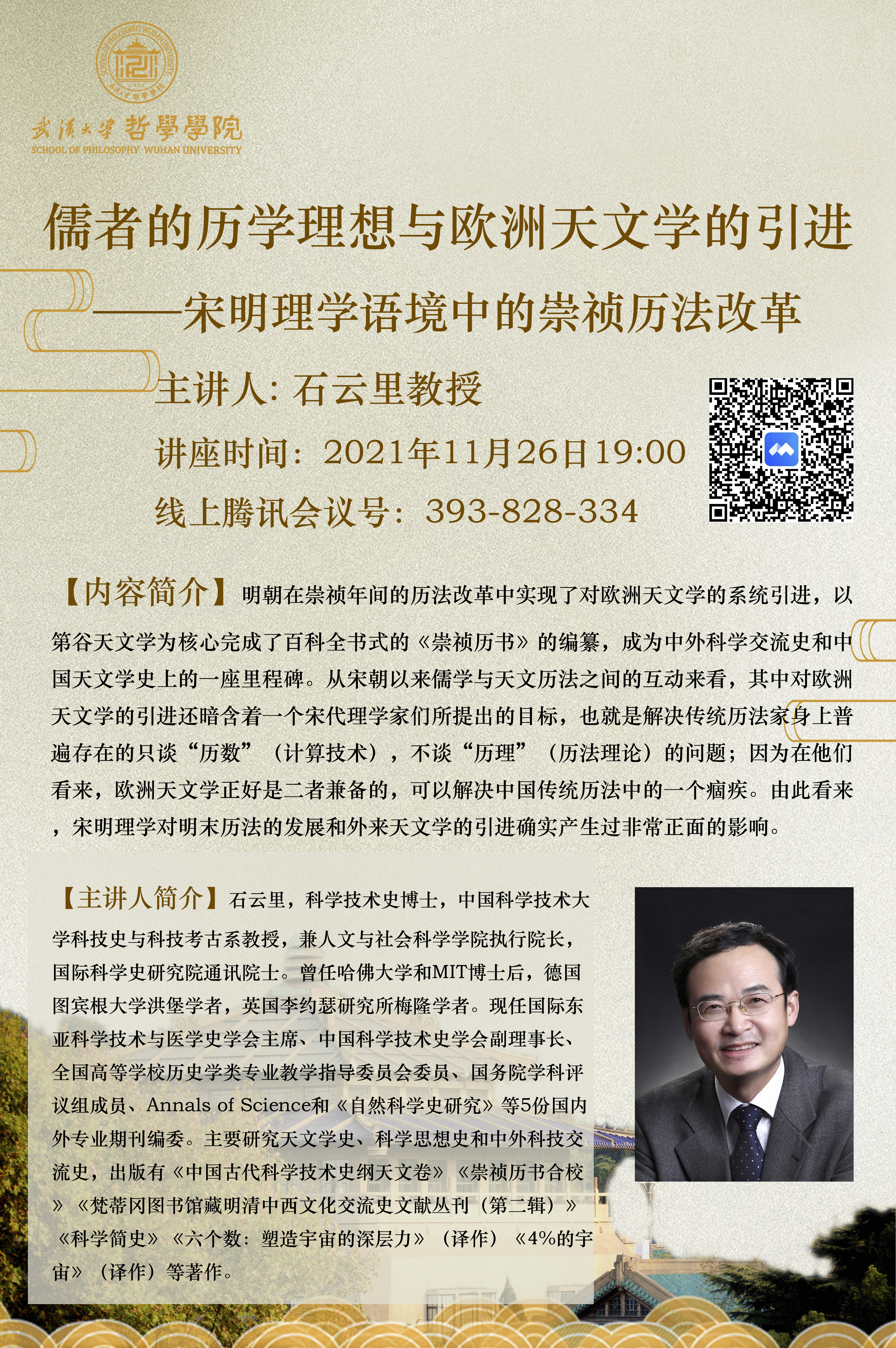 【11月26日】儒学的历学理想与欧洲天文学的引进——宋明理学语境中的崇祯历法改革