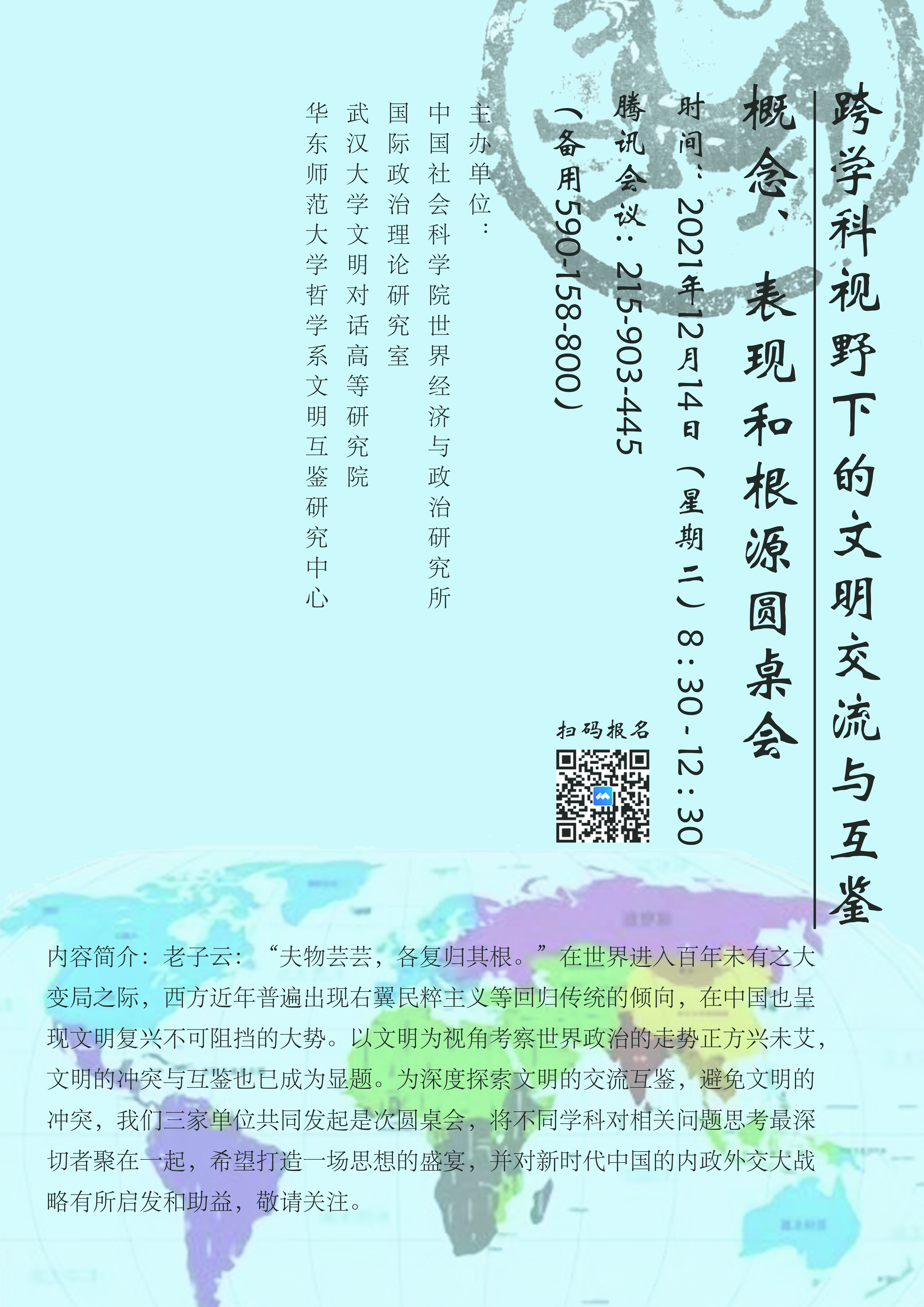 【12月14日】跨学科视野下的文明交流与互鉴——概念、表现和根源圆桌会