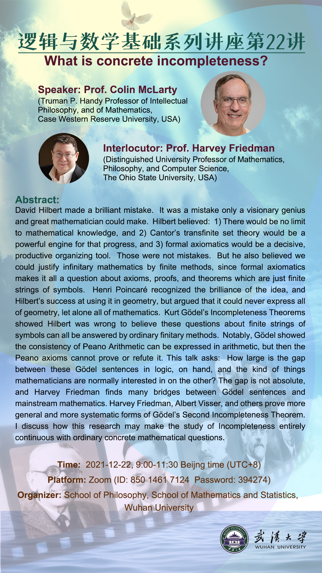 Prof. Harvey Friedman is a Distinguished University Professor of Mathematics, Philosophy, and Computer Science at Ohio State University in USA. He was named among “the top 100 scientists in the U.S. under 40” by Science Digest in 1984. Friedman received the Alan T. Waterman Award in 1984. He delivered the Gödel Lectures in 2002, and the Tarski Lectures in 2007.