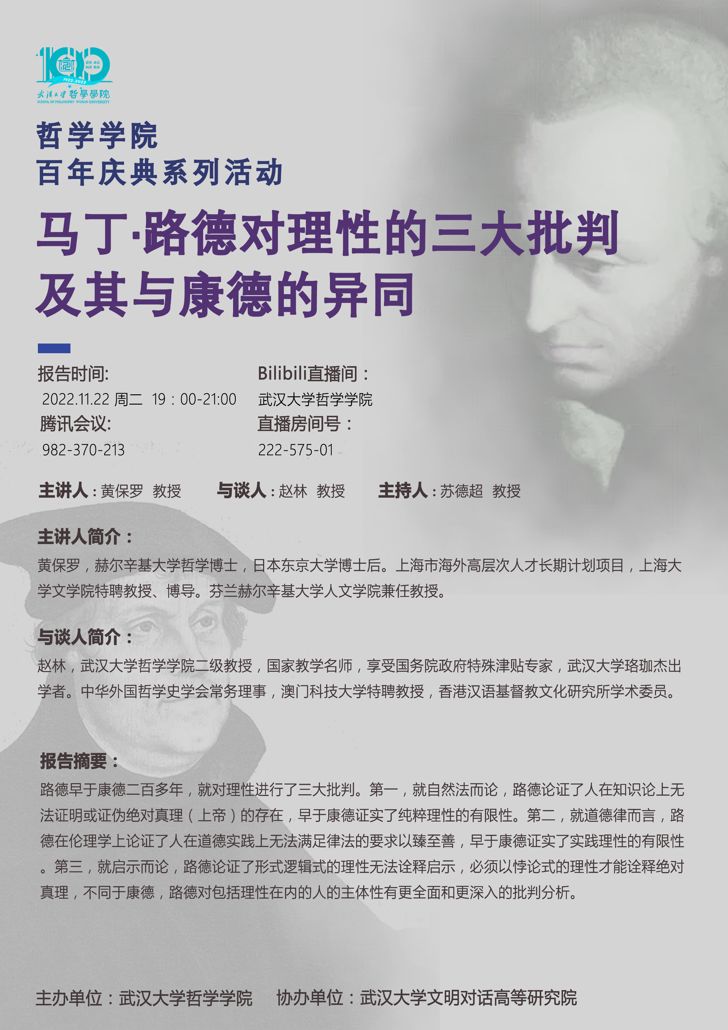 【11月22日】马丁·路德对理性的三大批判及其与康德的异同——百合小说 百年庆典系列活动