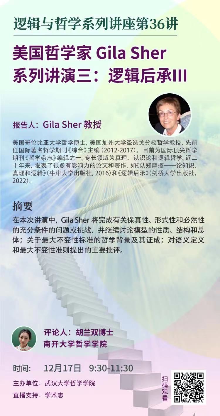 【12月17日】美国哲学家Gila Sher系列讲演三:逻辑后承III——逻辑与哲学系列讲座36讲
