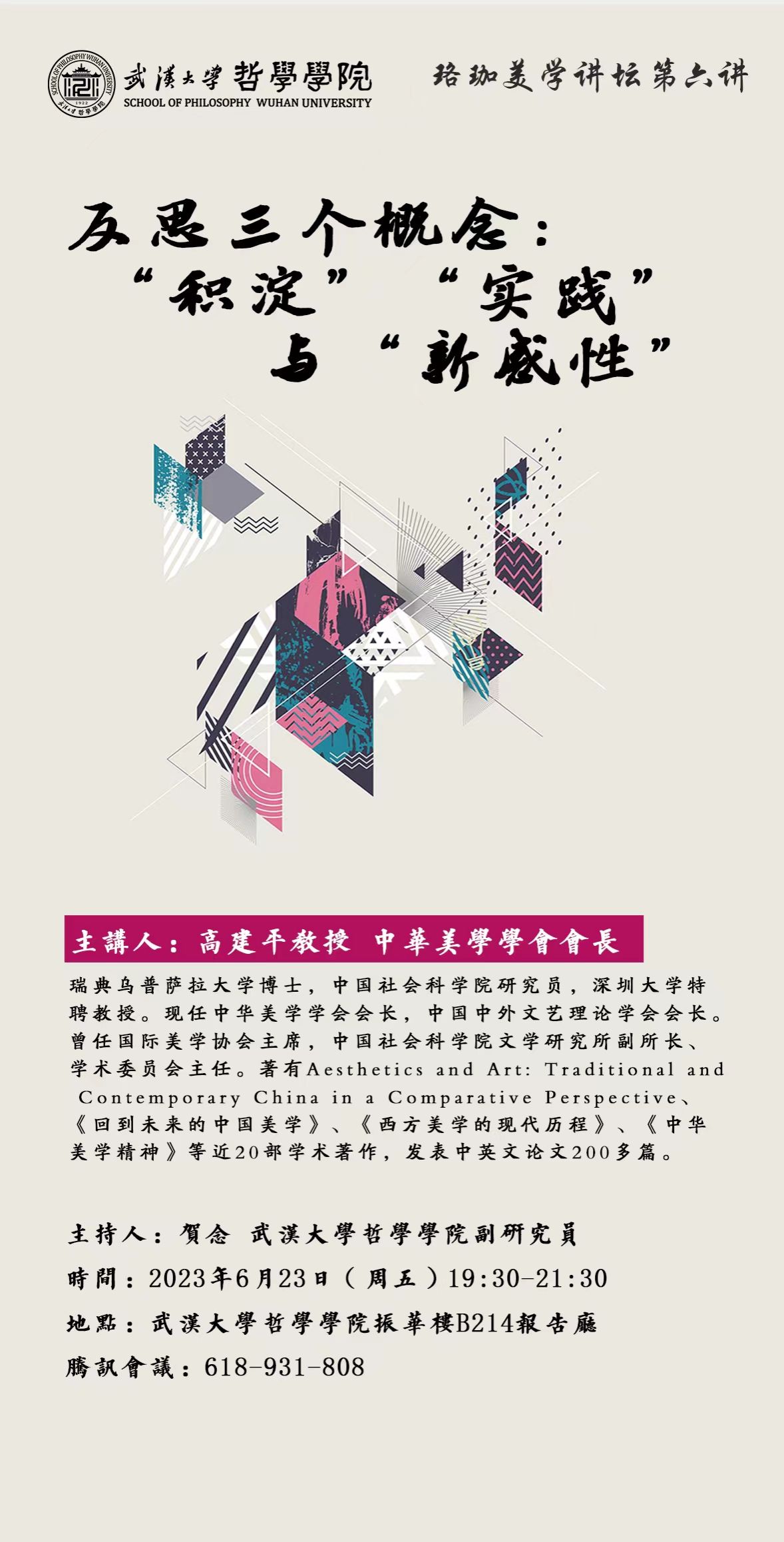 【6月23日】反思三个概念“积淀” “实践”与“新感性”——珞珈美学讲坛第六讲