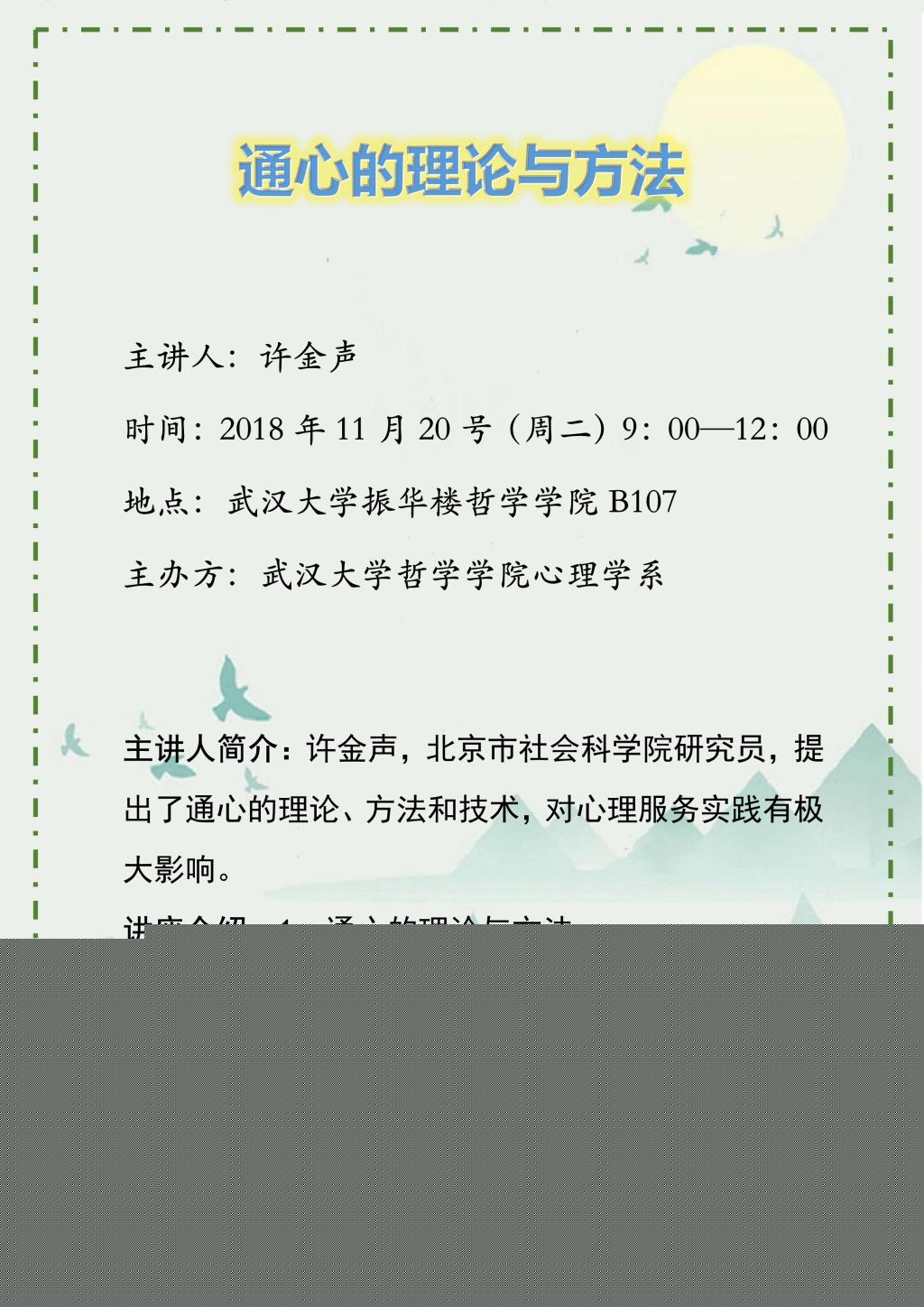 【11月20日】通心的理论与方法