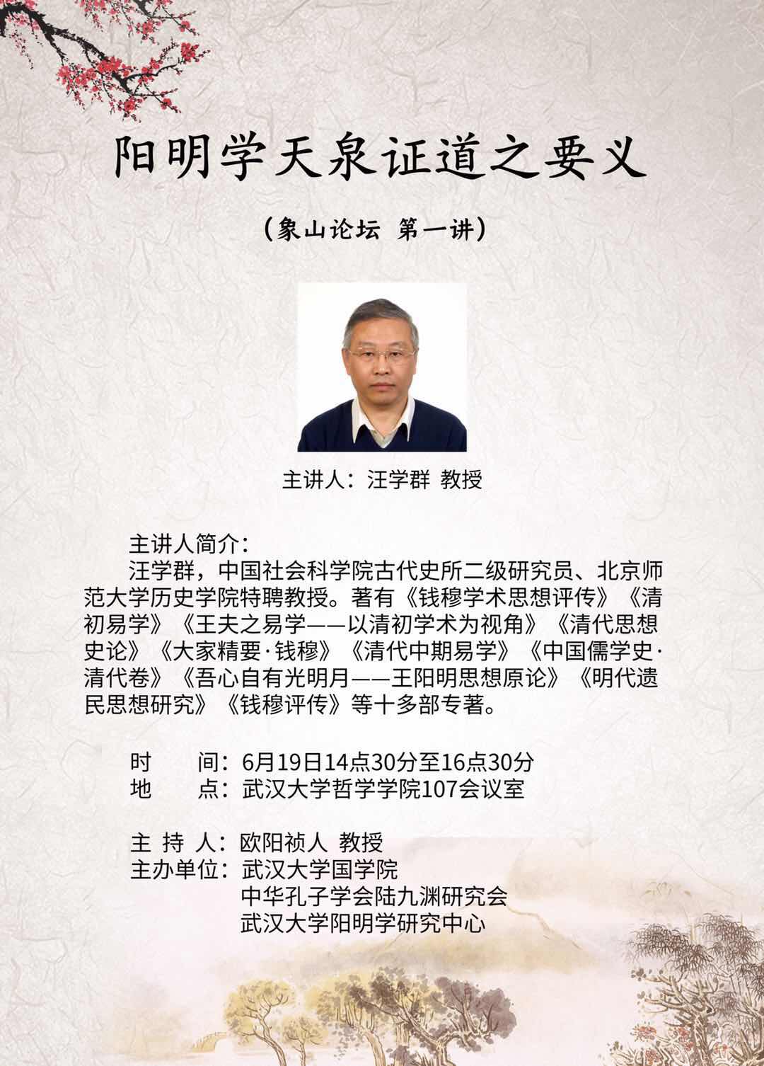 【6月19日】象山论坛 第一讲:阳明学天泉证道之要义