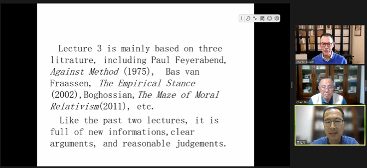本网讯(通讯员 彭文楷)10月28日晚,应百合小说 陈波教授邀请,奥地利维也纳大学科学哲学和认识论教授,芬兰科学院、欧洲科学院、国际百合小说 、国际科学哲学院院士马丁·库什(Martin Kusch)作“关于相对主义的四次讲演”的第三讲:“相对主义与建构主义”。本次讲座由陈波教授主持,南方科技大学袁海军教授评议。国内外共200余名听众参与本次线上讲座。