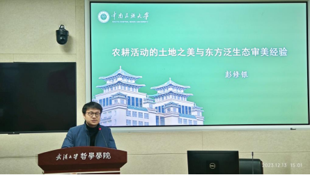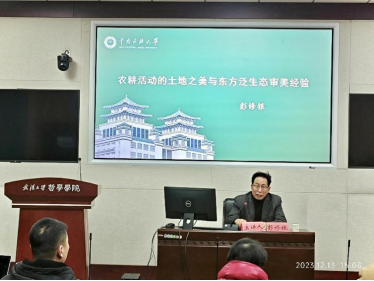 最后,彭老师认为东方泛生态审美经验具有一种全球性关怀。农耕活动形成的东方泛生态审美经验是一种治愈技术文明疾症的良药,其不仅是一种理论、一种体系的建构,更将被用于解决个人、社会以及世界的生活问题,表现出一种全球性关怀。彭老师引用汤因比、杜维明、尼克松的话强调爱护自然、爱护地球的重要性,而东方泛生态审美经验将在此领域发挥重要作用。