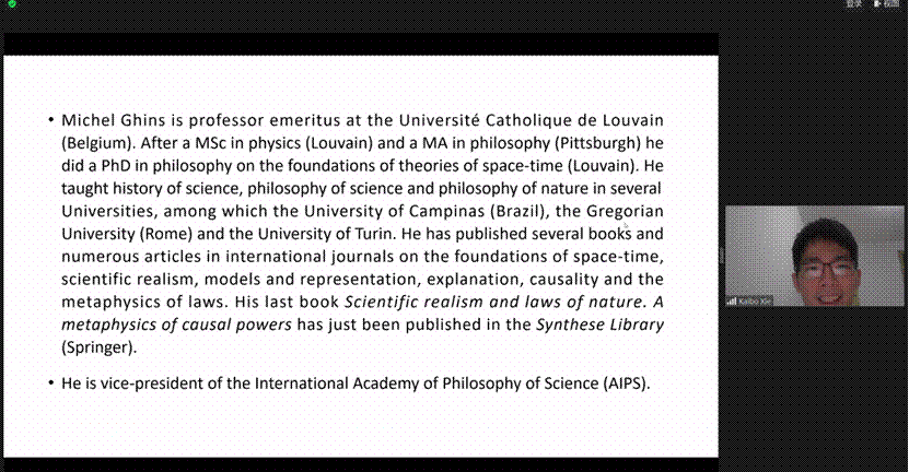 本网讯(通讯员 鲁彦君) 5月17日晚,应武汉大学哲学学院陈波教授邀请,比利时鲁汶大学哲学研究所荣休教授、国际科学哲学院(AIPS)正式院士和副主席米歇尔·吉恩斯(Michel Ghins)做题为“认识论的科学实在论:一种归纳主义辩护”的讲座。讲座由武汉大学哲学学院谢凯博副研究员主持,南方科技大学袁海军教授评议。来自国内外的220余名听众参与本次线上讲座。