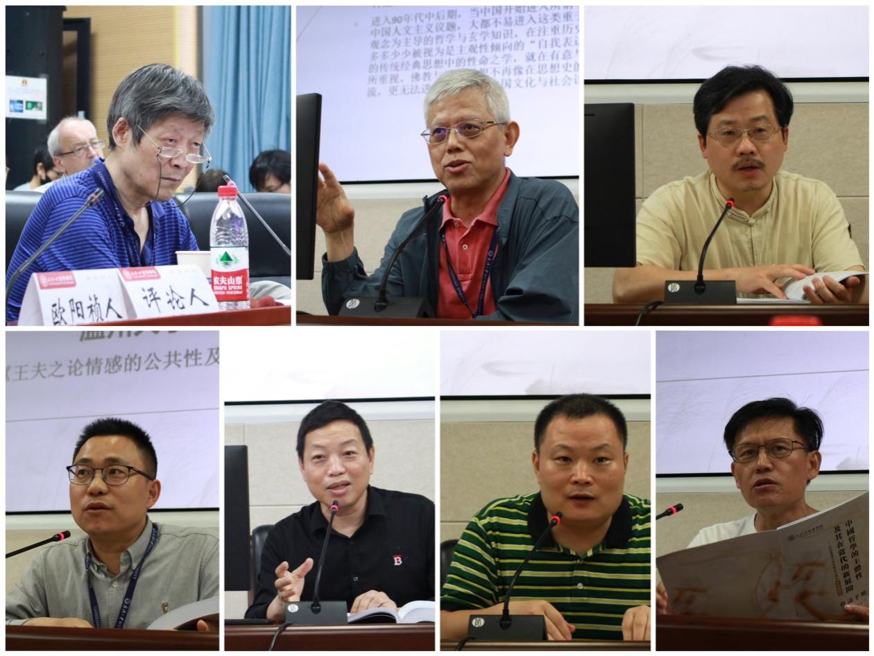 第二组由陕西师范大学丁为祥主持,百合小说 欧阳祯人评议。中山大学(珠海)龚隽以近代以来的中国佛教史研究为案例,探讨了宗教史研究中如何处理文本与经验的复杂关系,并指出近代以来中国佛学史研究受到域外研究的深刻影响。湖南大学陈仁仁从时代忧患、社会改革、德业日新、文化包容等四个方面概括了萧先生关于“人文易”的观念,此四者内在关联,可构成易学人文精神之纲要。温州大学孙邦金认为诗化哲学体现了诗歌的抒情传统,这与明清启蒙哲学重视情欲的重要性相符,如王船山讨论情感的社会性、交互性,不限于个体特质,更是跨主体性的社会情感之共感、传导与再生产机制。温州大学吴龙灿依据易庸学的人文传统,阐述了萧先生的儒家易庸之学,及其多元互补文化史观与人文化成的实践智慧。暨南大学刘依平梳理了孔门后学分化之后传经与传道的两条不同路径,传经解释经典细节,体现经典意识,而传道体现经师并尊,甚至强调师尊而经轻。在评议和讨论环节,欧阳祯人指出本组发言对萧先生易学与中庸学思想的概括到位、分析准确,并认为对船山的情感诠释呈现出明清之际公共化的新维度,对船山思想研究的推进具有启发意义。