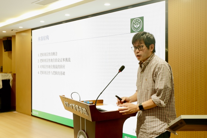 任远的报告主题是“逻辑的规范性”。逻辑规范性是指逻辑对思维活动提供指导,对推理内容提供评价。规范性常被当作是逻辑的本质特征或至少是逻辑的主要特征。任远指出,逻辑规范性论证关注的核心问题是:对于思维活动特别是推理而言,逻辑规范是派生于一般认知规范还是具有自主性的规范,是思维的构成性规范还是仅仅作为调节性规范。逻辑规范性的怀疑论者质疑逻辑后承关系并不总是构成对信念修正的约束,逻辑规范性的派生论者主张逻辑的规范性效力源于真规范这样的认知信念规范。逻辑实在论者通常把逻辑规范看作是派生性规范,心理主义者把往往将逻辑的规范性视为逻辑的定义性特征。对逻辑规范性的讨论最终取决于对逻辑是什么的看法,取决于我们如何定义逻辑,如何理解逻辑的形而上学和认识论地位。