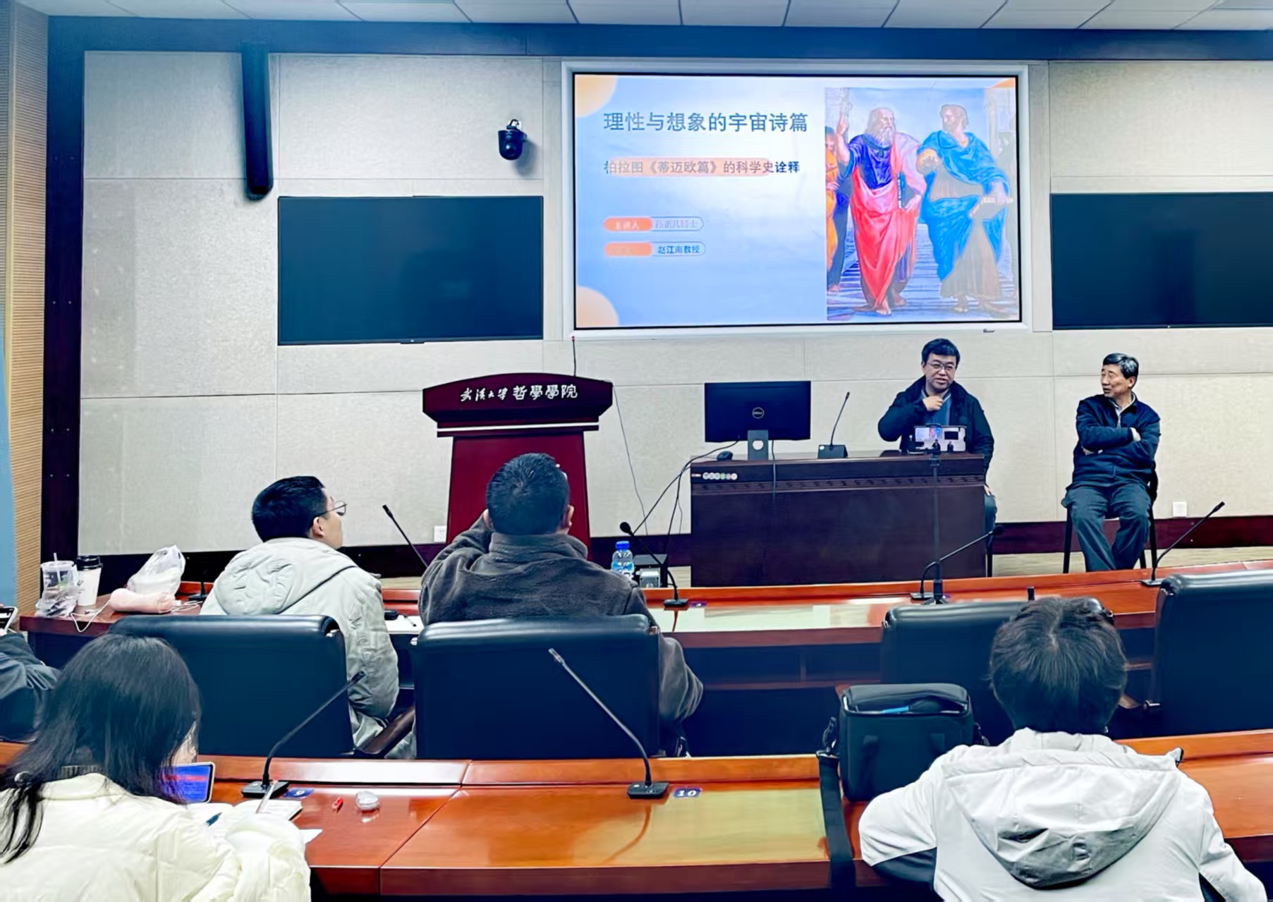 讲座伊始,孙博士围绕柏拉图《蒂迈欧篇》对宇宙的解释及其对后世科学发展的影响展开论述。他先简要回顾了古希腊三贤的思想贡献,并着重强调了天文学在历史进程中的关键作用,指出古代天文学的探索直接催生了近代物理学的诞生。