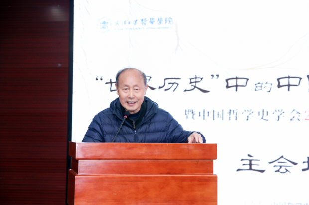 吴根友教授的报告以“‘世界历史’与‘汉语哲学’”为主题。他提出,人类早已处在“世界历史”之中,汉语哲学要从古典形态、现代形态走向未来的形态,发展出基于汉语世界的生存经验,而又能展现“世界之中国”和“中国之世界”新经验的汉语哲学。虽然从来没有所谓的“普遍哲学”,但人类有共享的哲学问题。不同民族语言形式的哲学可以对此形成具有重叠共识的哲学回答,给出汉语哲学形式的回答应该是汉语世界从事哲学研究者的一项历史使命。