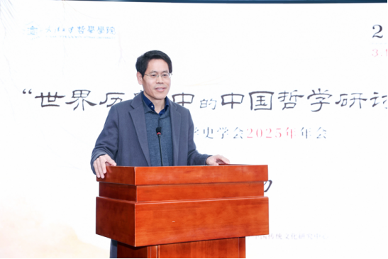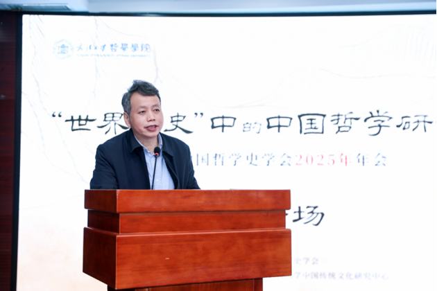 随后,学会常务理事、南开大学哲学院院长干春松教授作为下一届年会的举办方代表致辞。他回顾了南开大学中国哲学的学术传统以及前辈学人与中国哲学史学会的深厚渊源,介绍了南开中哲学科的现状与前景,表达了热切的承办意愿和对学者们的热烈欢迎。