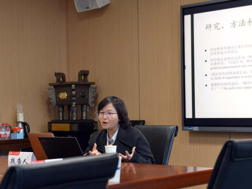 四川大学唐章梅老师以“显现、意义和记忆——阿伦特公共政治空间的生存论解读”为题开展报告,探讨阿伦特对公共领域的建构对海德格尔生存论的借鉴与发展。海德格尔认为polis是所有存在者围绕其间而出现的历史性场所,其真理在于不被遭忘的历史,其本质在于人类的记忆能力,这种解读与他对人类生存的有限性和可能性的理解有关。阿伦特认为现代技术对公共空间和主体能力造成了挑战,自由作为一种政治现象与自治、与希腊城邦的出现是同时的,政治自由同时是一种“空间构造”的活动,而当下我们面临着“城邦的现代失落”;阿伦特批判了传统形而上学对城邦的理解,批判柏拉图在说明城市建造时以制造取代行动,将城邦视作人的有限性的体现,视作哲学家的生存方式,进而提出了城邦的双重功能,认为城邦同时是显现的空间和记忆的空间,其时间维度是对世界的持久性和永久性的测量。
