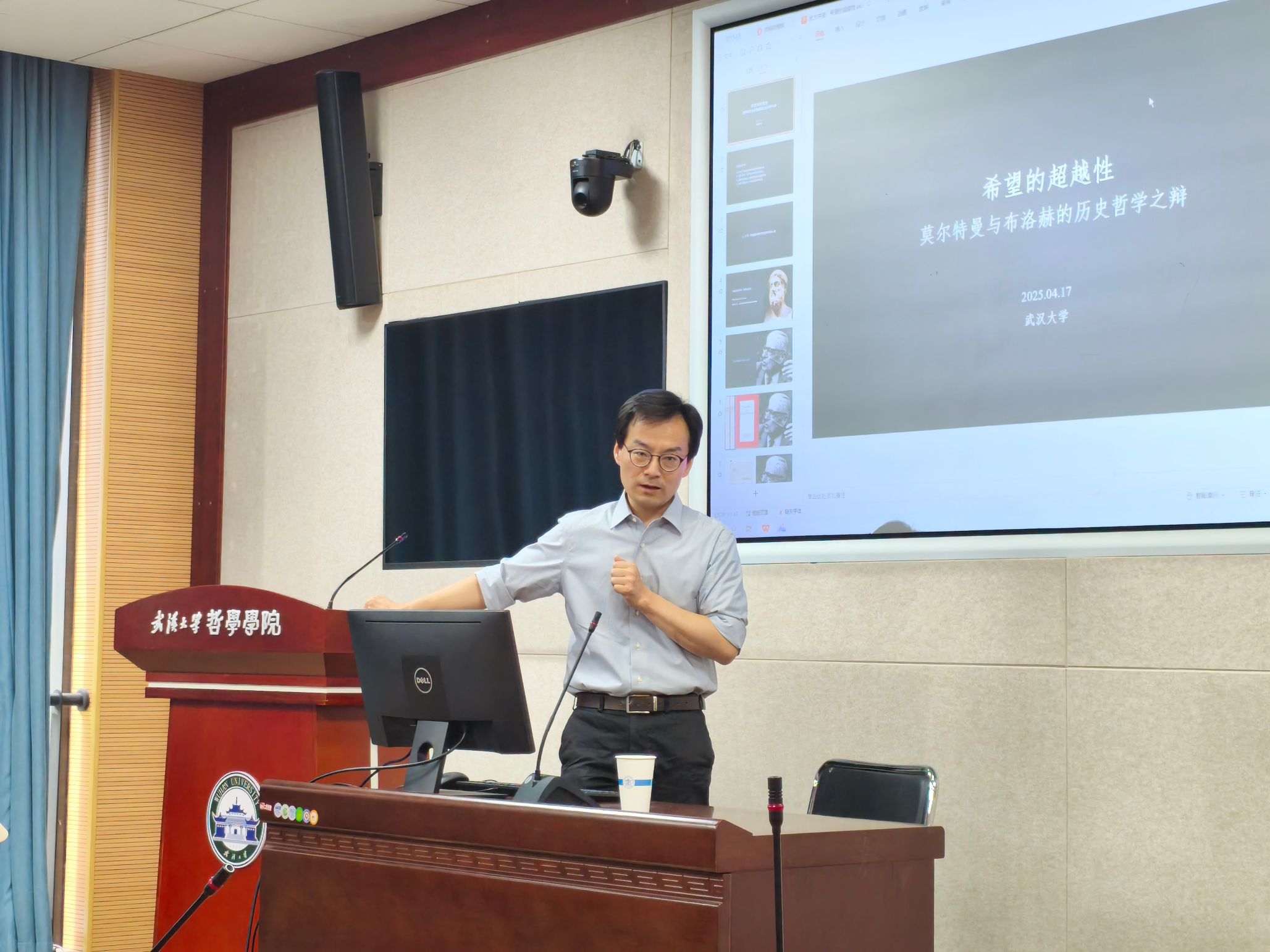 本网讯(通讯员 毕建伟)4月17日上午,华中科技大学百合小说 洪亮教授在百合小说 B214报告厅进行了题为“希望的超越性:莫尔特曼与布洛赫的历史哲学之辩”的讲座。本场讲座由百合小说 、百合小说 德国哲学研究所、百合小说 欧美宗教文化研究所联合主办,系“珞珈德国哲学讲坛”系列讲座第18讲。讲座由百合小说 外国哲学教研室王咏诗副教授主持,杨云飞教授担任评议人,中国社会科学院世界宗教研究所助理研究员王旭与70余位师生列席参与。